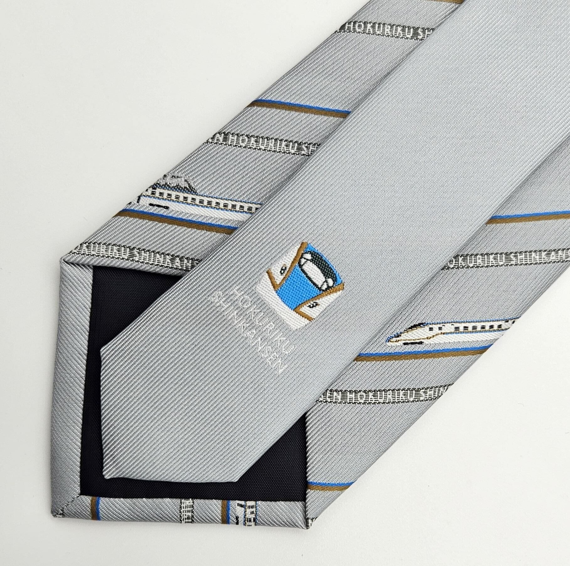あんとの入口展示で幾度となく紹介している、好評の“北陸新幹線ネクタイ”