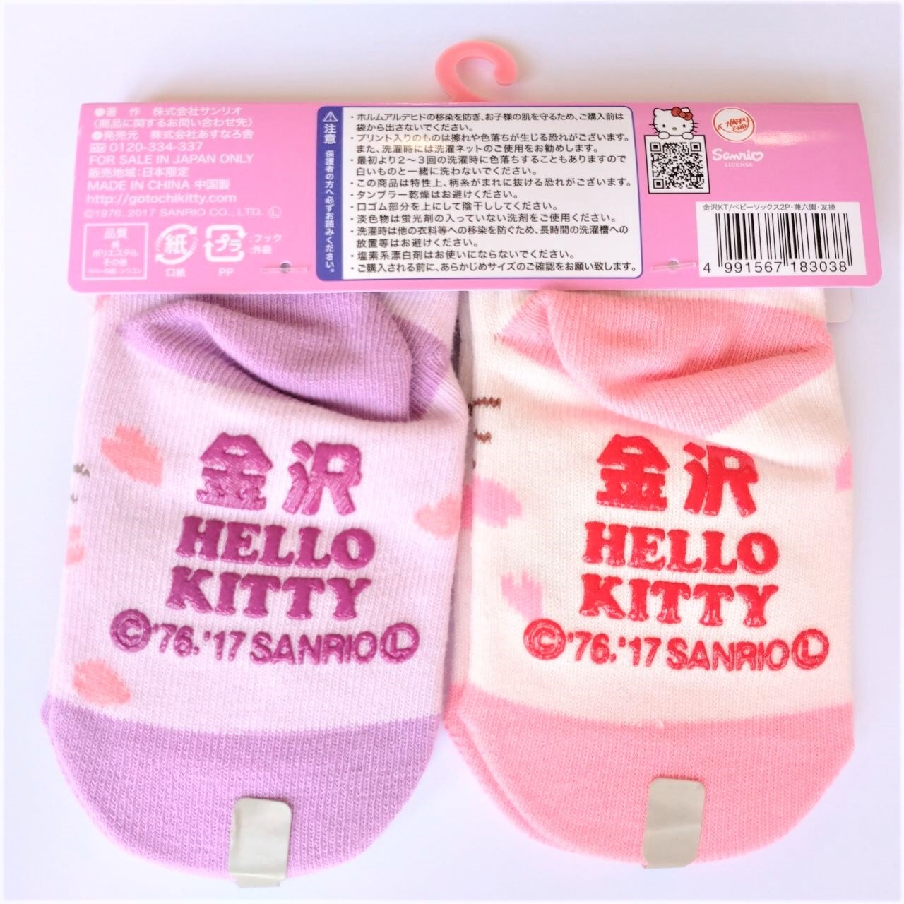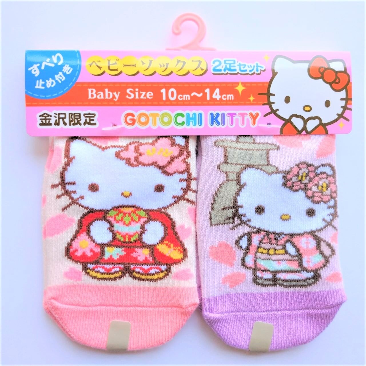 着物を来たキティーがかわいらしい兼六園、てまり柄のソックスセット。滑り止め付きなので安心です。