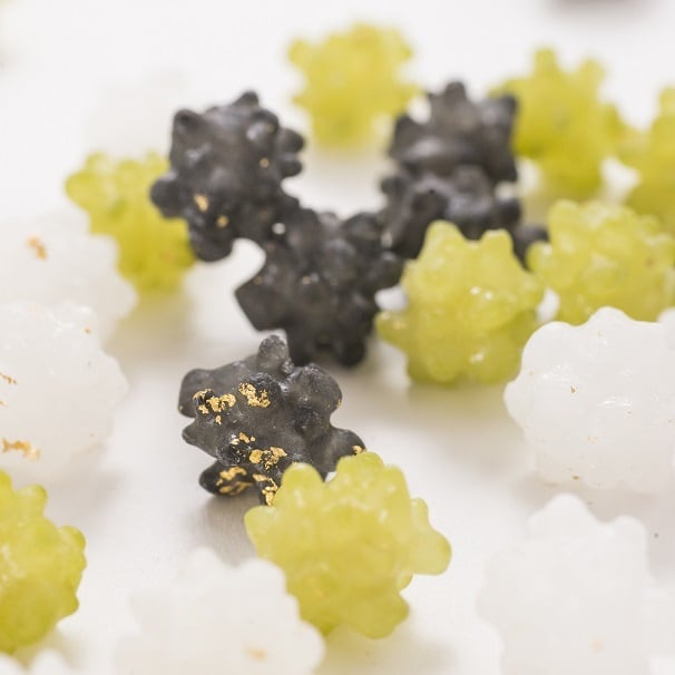 【原材料】グラニュー糖(国内製造)、上白糖、黒糖、抹茶/着色料(炭末、クチナシ、紅花黄、金箔)、香料